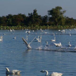 冬が近づいて、ここ阿賀野市にも白鳥が飛来しています。 五頭山麓いこいの森から来るまで15分のところにある瓢湖へ行ってみましょう。朝夕になると、餌場へ飛んでいく姿が見れます。