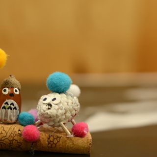 たくさんドングリが落ちてきます。 それを使った工作体験を開きました。 木にくっつけても面白いですね。 できあがりです。