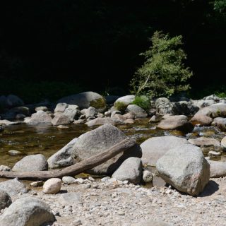 ちょっとだけですが、ものすごい暑さから解放されました。 それでも、太陽の光の下は暑いので、木陰に入るといいでしょう。 空には雲がありません。 森の中は、意外に風があります。 川へ行ってみました。 かな...