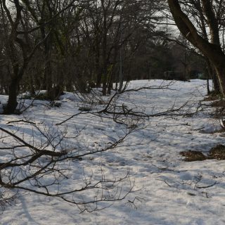 今日はずいぶんと暖かい一日でした。 どれぐらい雪が溶けたかなと思っていたのですが、五頭山麓いこいの森はまだまだ雪があります。