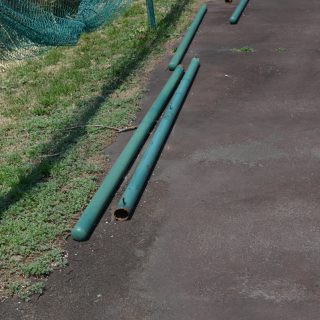 この冬の大雪のせいで、テニスコートの周囲に張っているネットの支柱が折れてしまいました。 根元から折れてしまっています。 このとおり、ほとんどの支柱が折れてしまっているところがあるため、テニスボールのよ...