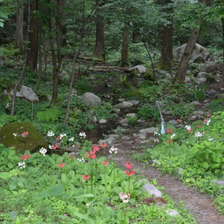 五頭自然郷の散策道のわきに、オオウバユリがたくさん咲きました。 ここまで群生するのは珍しいことです。 ウバユリ属は、世界的にそれほど分布が広くなく、ウバユリの学名は牧野富太郎博士によるもの。 クリーム...