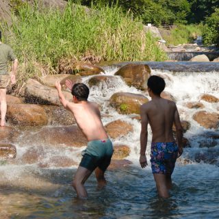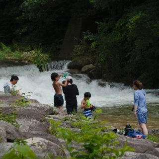 キャンプしながら目の前の川で遊べる環境は最高です。 五頭山麓いこいの森の上流へ行くと、魚止めの滝もあるので要チェックです!