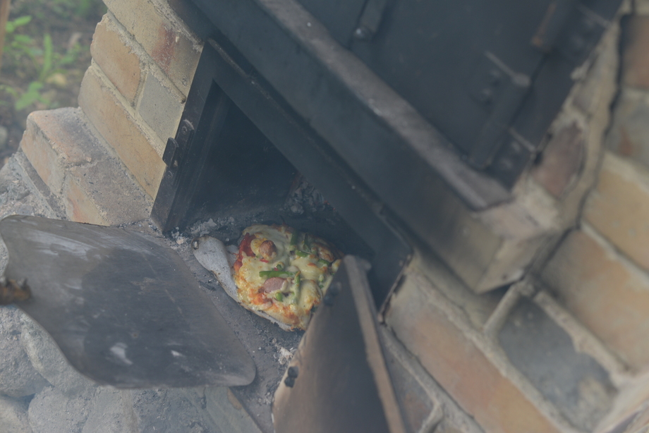 基本は、焚火の仕方と一緒ですが、なにせピザ釜は、熱がこもるようにするために、自由になる空間が少なくなっています。その分作業はちょっと面倒です。