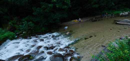 ランタンがあれば、テントのそばは明るくなります。少し歩いてみると、点々と明るいところがあるのがわかります。