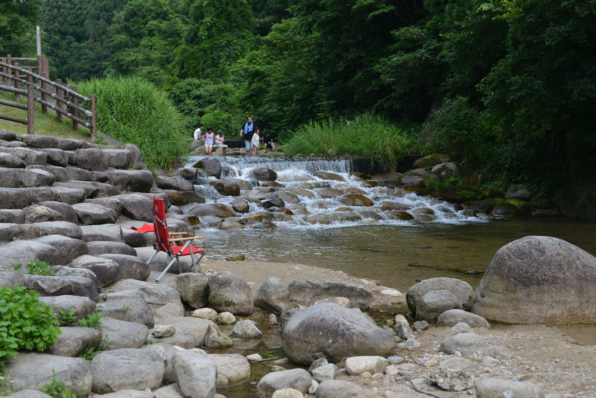 大荒川では、小さい子も遊んでいます。石を使って、小さなプール状にしていってくれた人がいるようで、そこなら安心ですね。