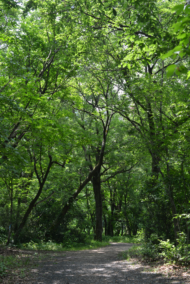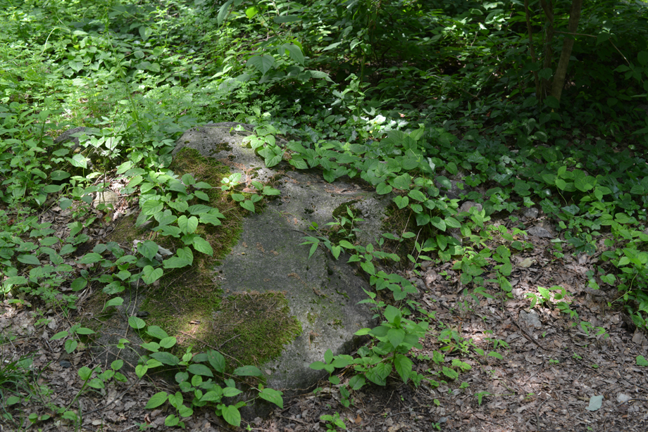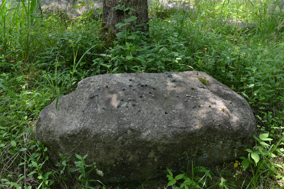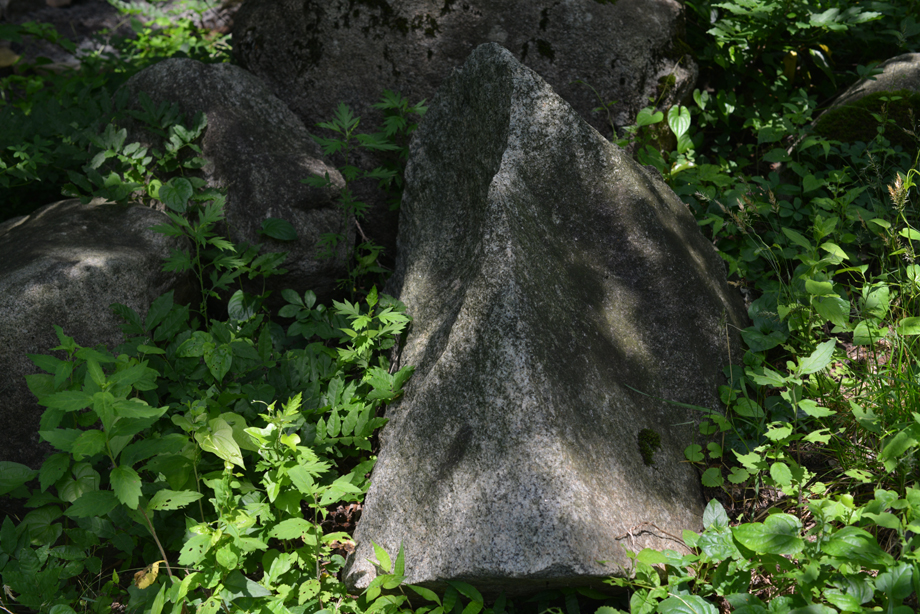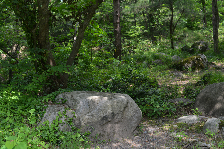 五頭山麓いこいの森の中には、大きな石がごろごろしています。
