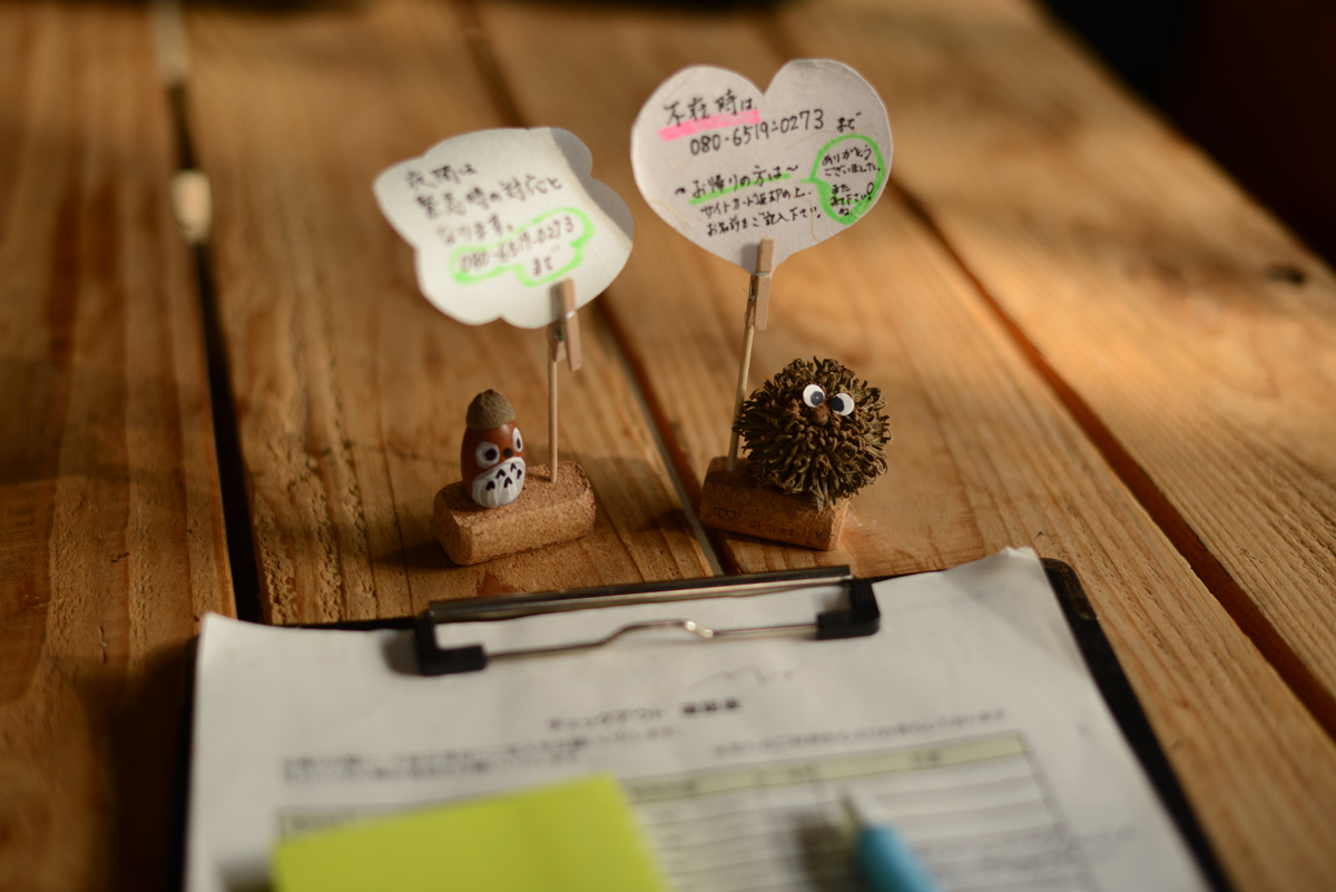 管理棟に人のいないときもありますが、連絡はこちらのメモでお願いします。