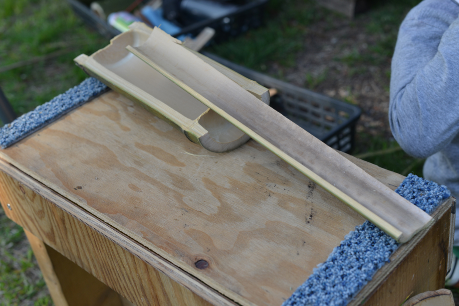 孟宗竹で食器を作ってみようとご家族がやってこられました。今夜のバーベキューの時に使えるので、食器類は少なめにしか持ってこなかったとのこと。