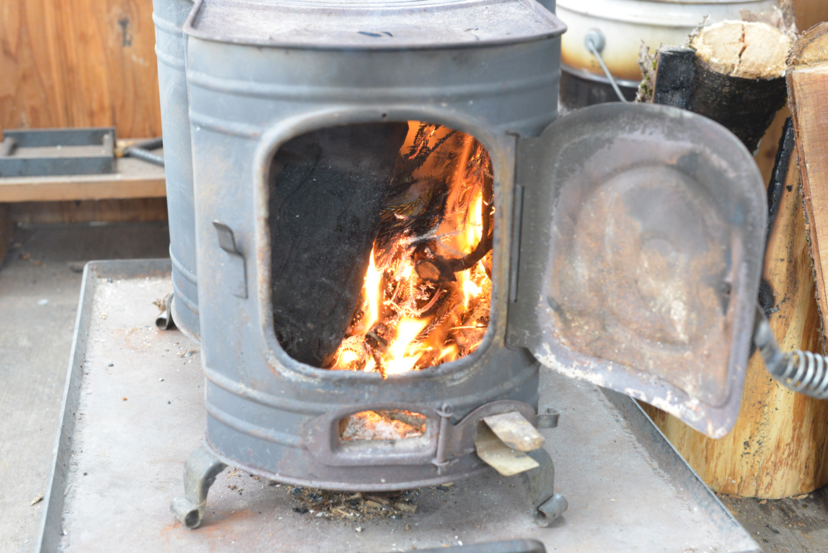 とりあえず寒いので、だるまストーブに火を入れます。