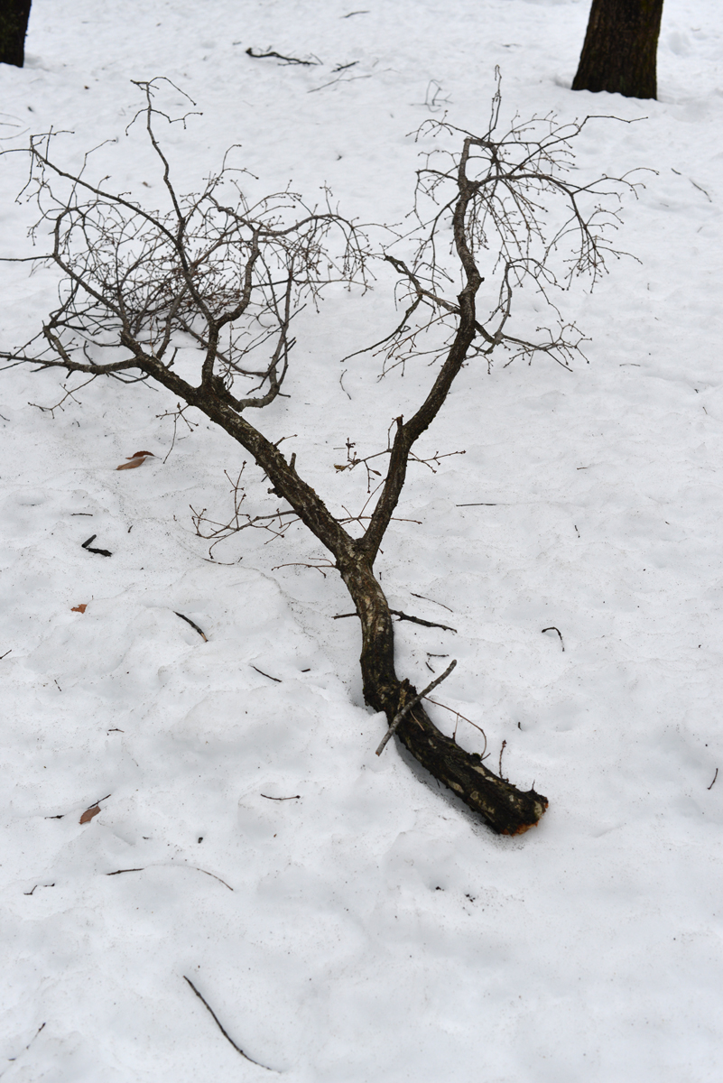 さて、森の中ですが、大雪のためか大きな枝が折れて降ってきています。