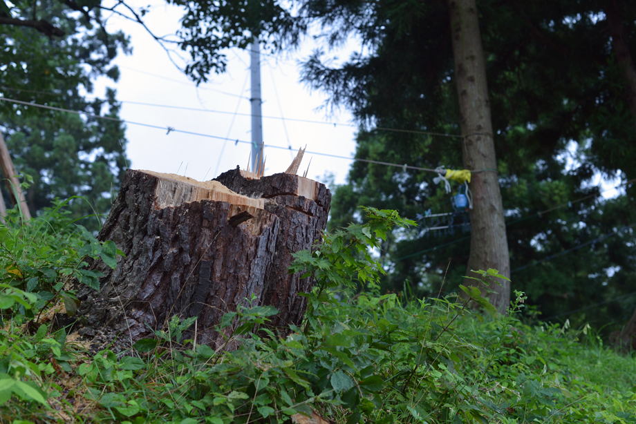 駐車場そばに生えていたものは、あらかじめ切り倒すことにしました。
