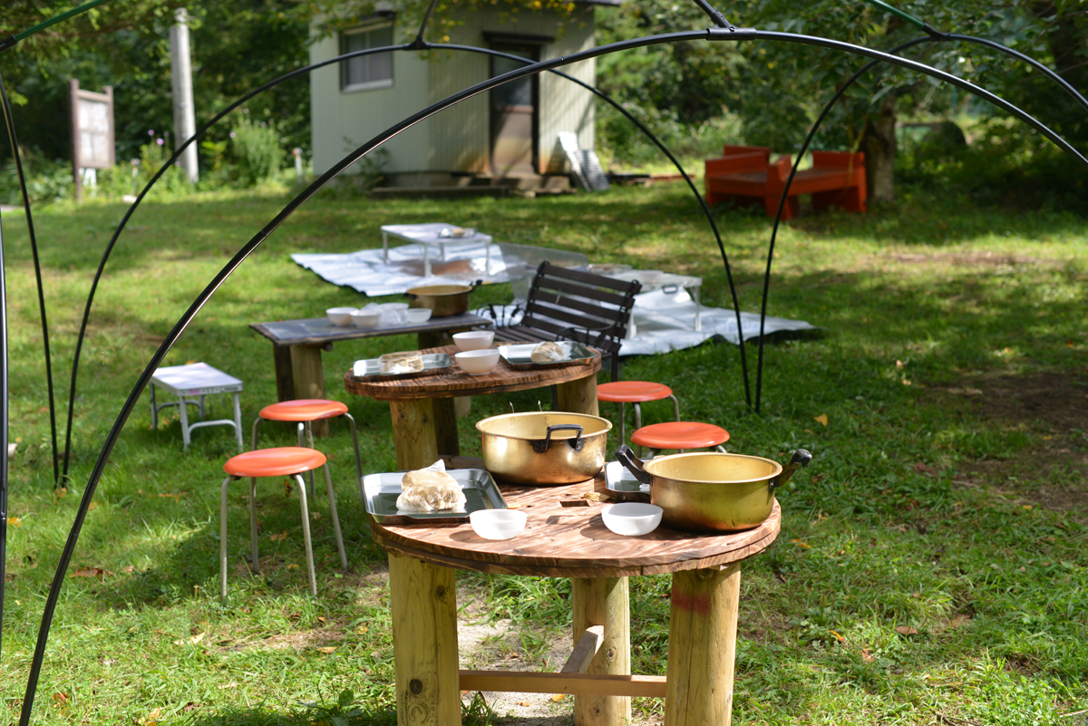 天候もちょうどよいので、外で作りましょう。