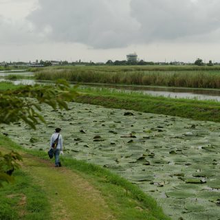 五頭山麓いこいの森から新潟市方面へ車を走らせると、一面田んぼばかりになります。その真ん中に福島潟があります。今回はここで学習しましょう。