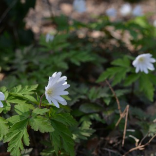五頭山麓いこいの森で、雪割草が盛りを迎えています。 白花のキクザキイチゲもきれいに咲きました。