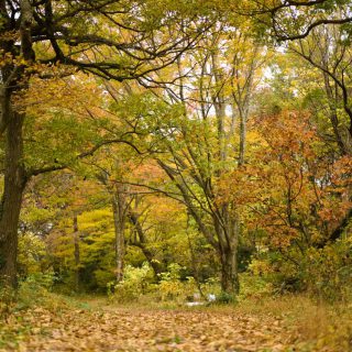 11月も真ん中です。五頭山麓いこいの森は、落ち葉がたくさんです。 たいがいの木は、黄色く見えます。