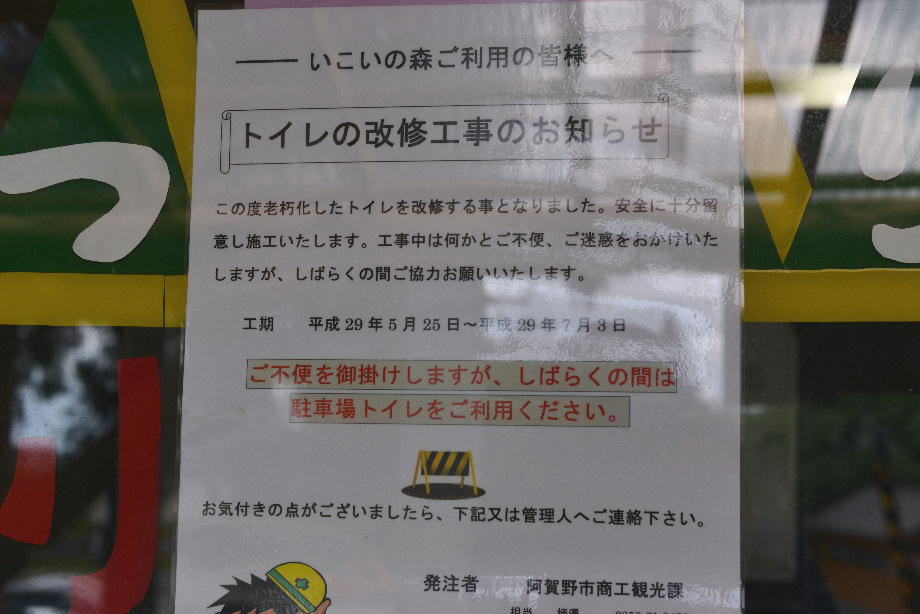 五頭山麓いこいの森の施設の一部が6月いっぱい、メンテナンス工事を行います。