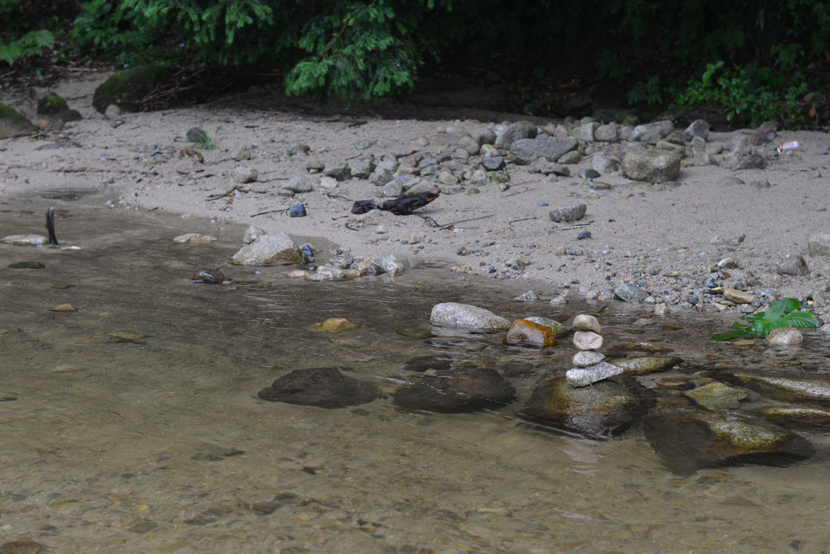 川にはオタマジャクシやトンボが見られるようになりましたが、ちょっと危ないところもあるようです。