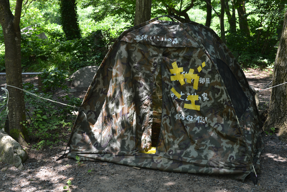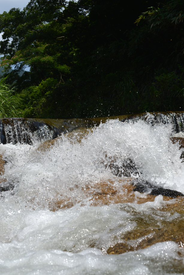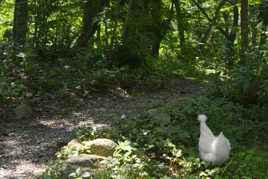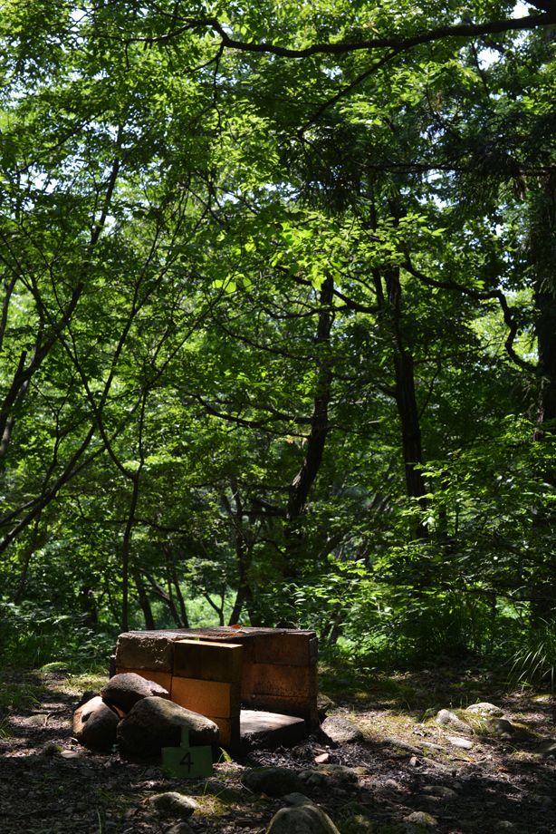 このちょい上に行くとキャンプで荷物を運び入れる人のためのスロープがあるようです。川は森の中を突っ切るようです。