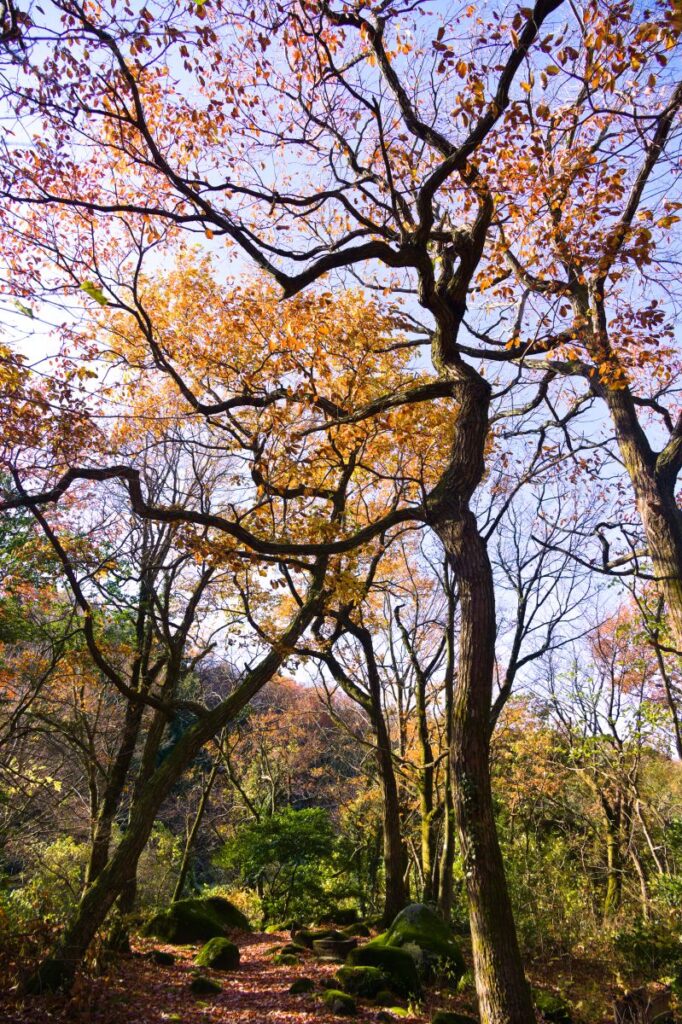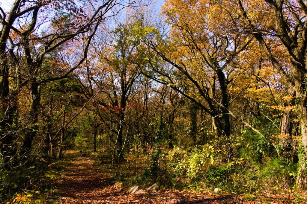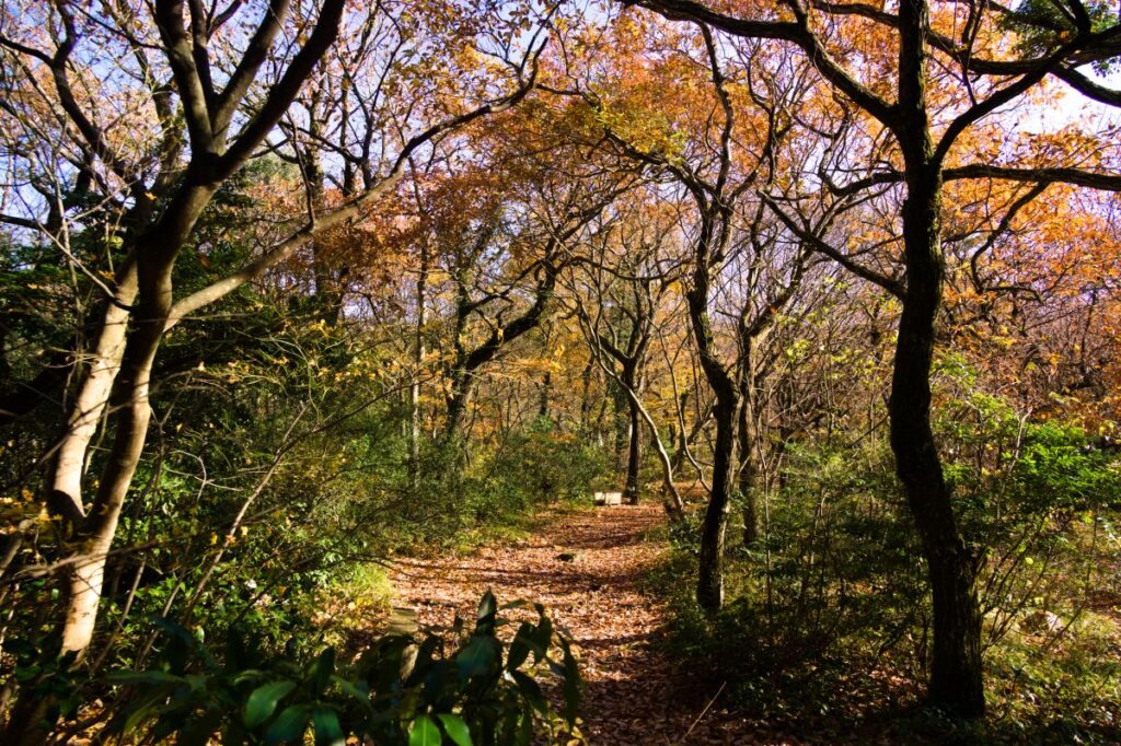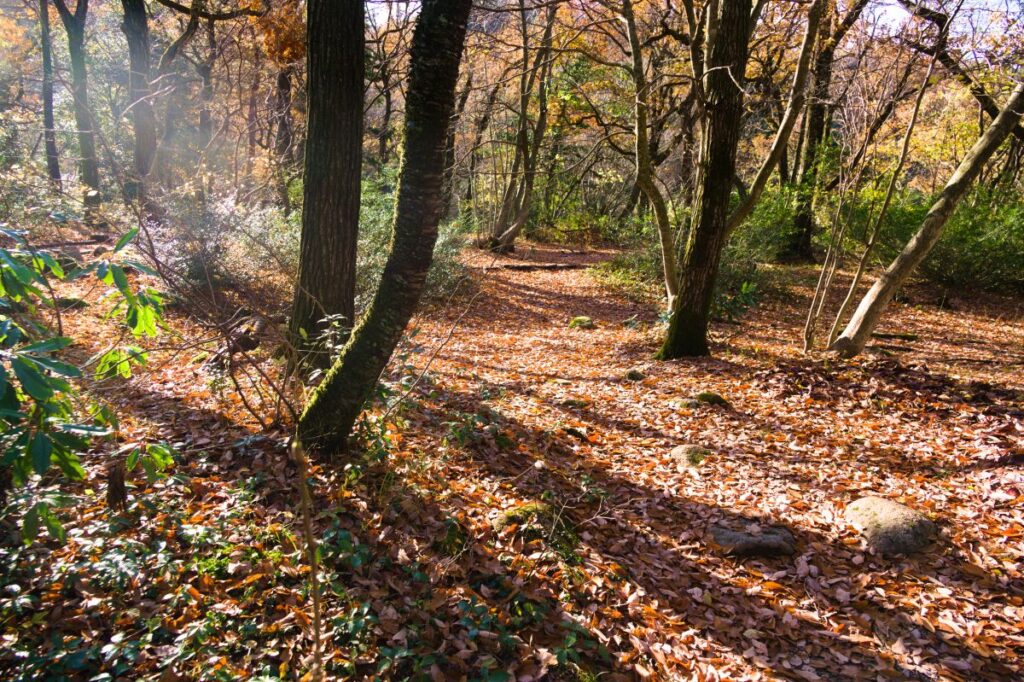 キャンプ場は今年度の営業を終えていますが、この時期は葉が落ちているので森の中は明るくて、歩きやすいです。